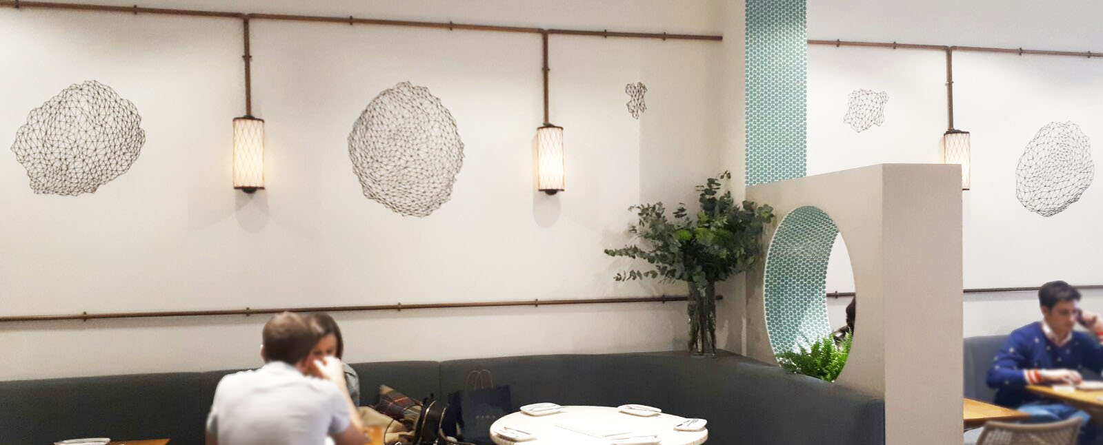 "Los puntos de encuentro, como el restaurante Lateral Fuencarral, son en los que más se ejerce el lenguaje, que es el que nos conforma como especie. En estos lugares se ponen en relación los individuos, nodos de esta red de relaciones que es la sociedad. En ese paradigma de la complejidad, evidente en una de las zonas más concurridas de la ciudad, se ponen de manifiesto las similitudes entre cómo nos comportamos entre nosotros y cómo se comportan entre los individuos de un hormiguero, de una colmena o cómo interactúan millones de ordenadores interconectados a la red neuronal de cualquier cerebro, en un juego constante de interacciones dinámicas, penetrantes y no lineales". (José Delgado Periñán, Madrid 2017)