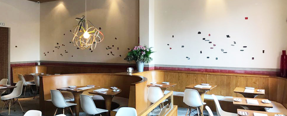 "Sopa de Letras" trata de un conjunto de pequeñas piezas de tela de diferentes formas y colores, donde se encuentran inscritos versos de canciones pop con letras de pasta. Algunas son más reconocidas que otras, pero al escucharse repetidamente y a diario en la radio, restaurantes y bares, todas forman parte de nuestro imaginario colectivo. Estos mensajes -que reflejan una preocupación en torno a la falta de tiempo, el desengaño, la pérdida de identidad, etc.- resuenan en nuestras mentes como si de mantras se tratasen, de forma que se convierten en los nuevos textos sagrados de la cultura de masas. A través de Sopa de letras Tania Tsong investiga la omnipresencia que tiene la música pop en nuestra sociedad. Por otro lado, "Enredados" también es un acto de resistencia contra la superproducción y el consumo actual en el cual rescata materiales de la vida cotidiana y los resignifica a través de procesos manuales, tales como coser, bordar y tejer. A pesar de su aspecto agradable y su aparente positividad, estas piezas también reflejan de alguna forma el fenómeno denominado la “sociedad del cansancio”, donde el exceso de positividad da lugar a un paisaje de trastornos neuronales, como pueden ser la depresión y el agotamiento. Abierta al público, podrás visitar la exposición en LTL Fuencarral hasta finales de octubre. ¡No pierdas la oportunidad de contemplar grandes obras de arte contemporáneo mientras saboreas uno de nuestros deliciosos pinchos!